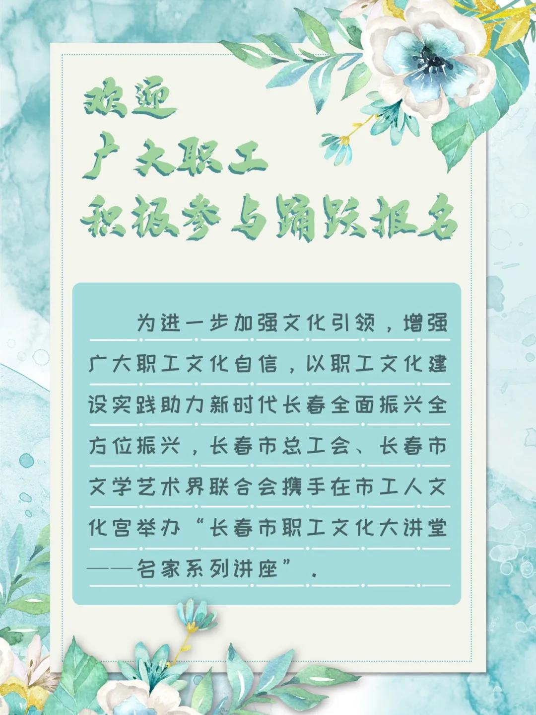 关注“长春市工人文化宫”微信公众号,点击“职工服务”→“在线报名”按钮或扫描下方二维码。