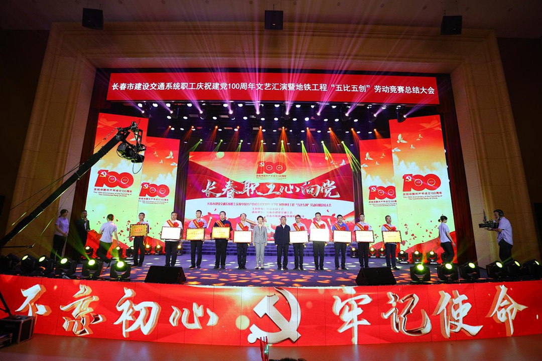 6月17日上午,长春市建设交通系统职工庆祝建党100周年文艺汇演暨地铁工程“五比五创”劳动竞赛总结大会在市工人文化宫举行。